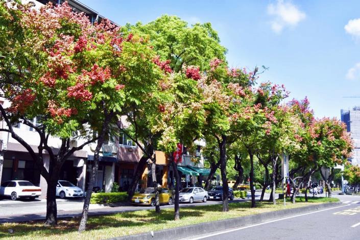相片4—台灣欒樹將民權路妝點成了繽紛的四色大道