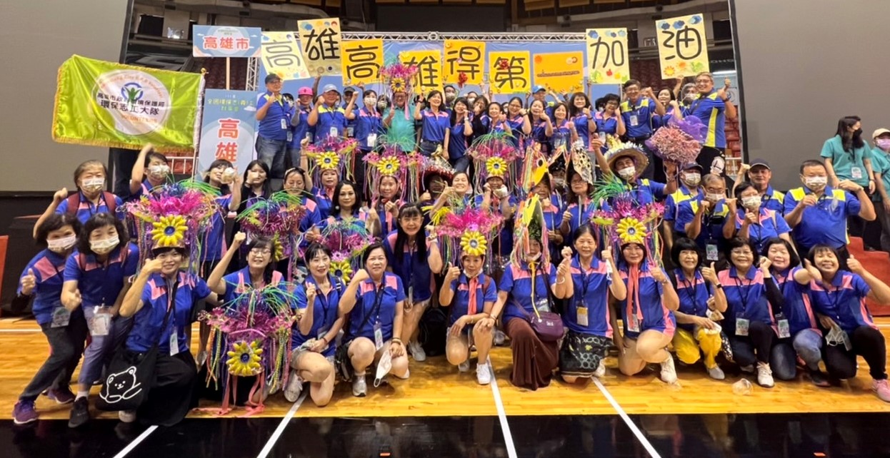 睽違2年的全國環保志(義)工群英會總決賽,今(10/29)日在高雄市鳳山運動園區盛大舉行,來自全國22縣市近2,000位環保志(義)工菁英代表齊聚一堂,高雄市環保局組成本市代表隊共72人參賽,奪下優異成績,獲得環保啦啦隊環境保護獎、環境保衛戰及資源分類王等3項優勝之榮耀,再創佳績。