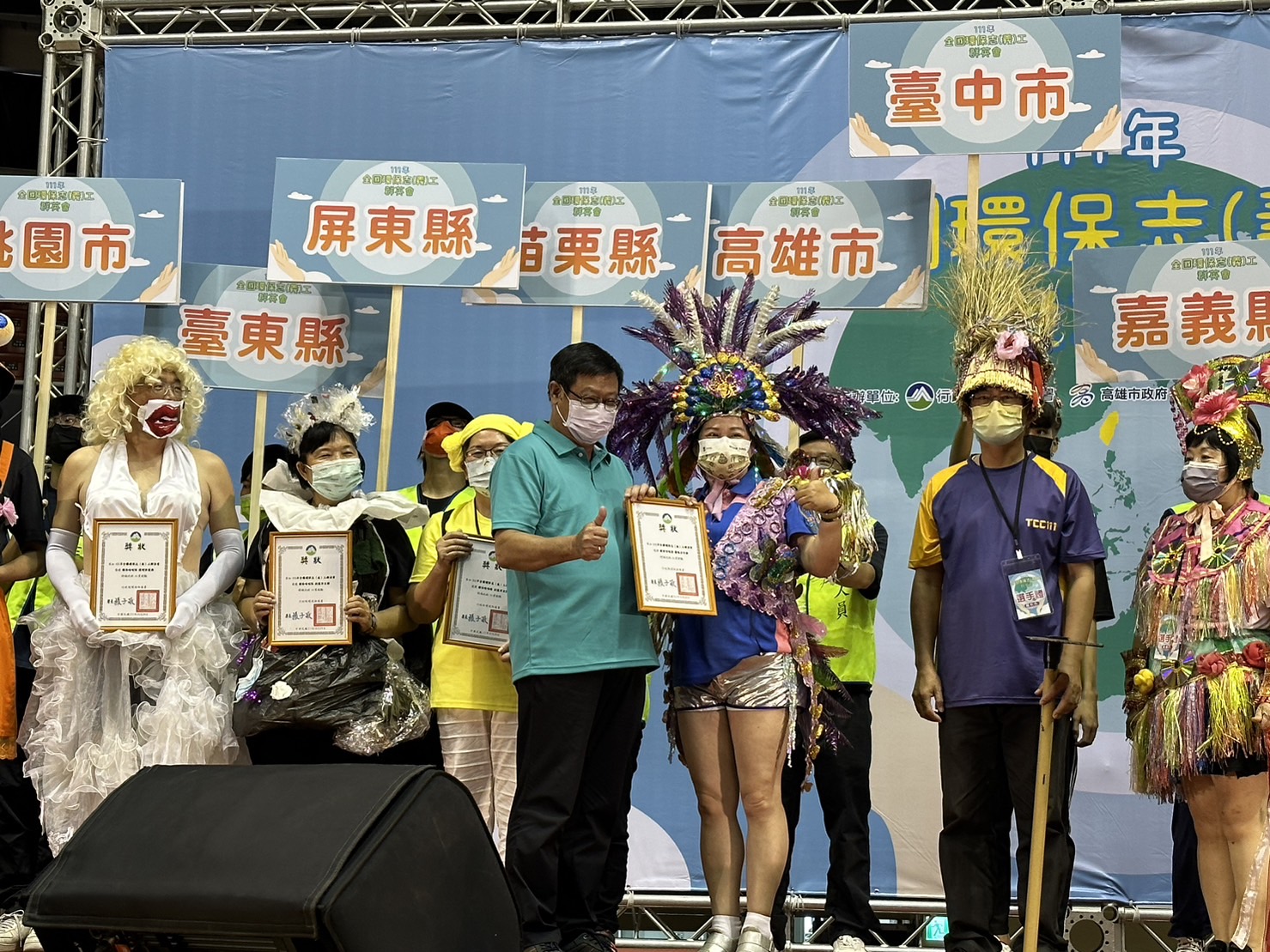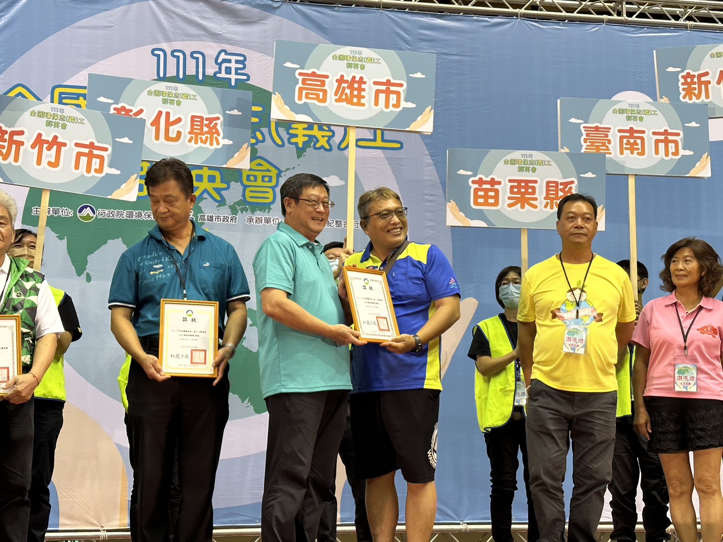今年高雄市代表隊由環保局張瑞琿局長親自率隊帶領參加全國決賽,參賽隊伍為環保啦啦隊—大寮區內坑新理想社區環保志工隊、環保金頭腦—仁武區灣北社區國土巡守隊、環境保衛戰—高雄市環境教育講師團、資源分類王—北鳳山區如意環保志工隊,在經過一番激烈競爭後,不負眾望,榮獲環保啦啦隊環境保護獎、環境保衛戰及資源分類王等優勝殊榮,在今年全國總決賽中大放異彩。