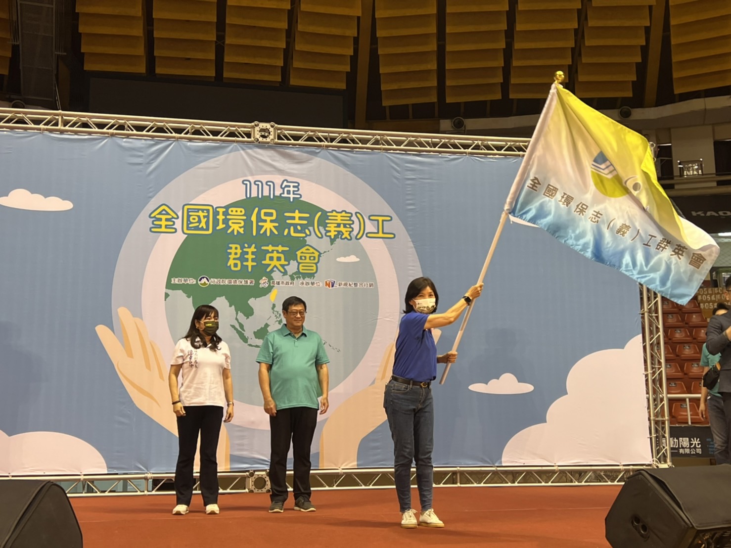 在活動最後,由張瑞琿局長代表高雄市政府,將全國環保志(義)工群英會大會旗交接給下屆主辦臺南市,象徵傳承環保志工的精神與輝煌,更期待明年再次相聚。