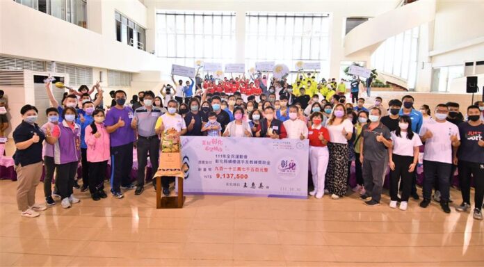 彰化縣運動代表隊日前參加由嘉義縣政府承辦之111年全民運動會,勇奪佳績,今(30)日下午在縣府一樓中庭舉辦頒獎典禮,由縣長王惠美頒發獎助金共計913萬7,500元,王縣長表示,恭喜所有優秀選手,今年在全民運動會勇奪非六都第一名的佳績,拿下17面金牌、13面銀牌、16面銅牌,合計46面獎牌,是,獲大會頒贈監察院院長獎的殊榮,這也是近五屆以來獲得最高金牌數,謝謝教練、所有師長對於選手的指導,更要感謝選手堅毅不拔,為彰化縣爭光,特別也感謝謝議長謝典林及議員們,對於縣政預算的支持,期勉所有教練及選手都能積極突破自我,再創佳績,繼續為彰化縣爭取最高榮譽。
