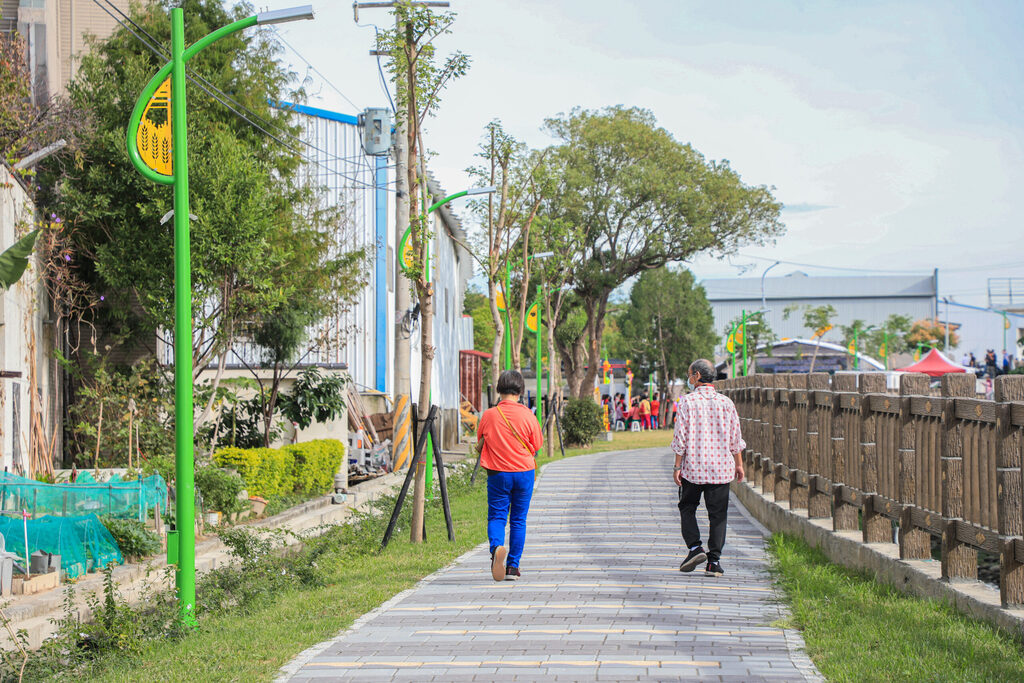 大雅區長李修齊表示,十四張圳第二期工程範圍從大雅區仁和路至神林南路,串連一、二期步道,打造長度達800米的水岸及稻田圍繞的休閒步道;十三寮排水周邊環境設施強化改善工程範圍為中和橋至振興六路區段,設有一座跨越十三寮排水的麥香人行橋,連結兩岸約1公頃的綠地範圍。此外,兩處均保留既有植栽與綠地,並預留滯洪空間,同時配置遊憩設施、展演平台,還有透水性步道,打造多功能優質公共活動場域。