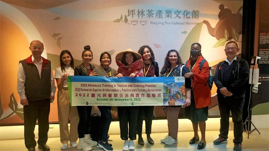 新北市政府農業局為推廣本市「田媽媽」,與財團法人國際合作發展基金合作辦理友邦技職訓練計畫,並媒合我國在中南美洲5個邦交國家(巴拉圭、瓜地馬拉、貝里斯、聖克里斯多福及尼維斯、洪都拉斯)婦女於今(2)日參訪本市坪林區農會田媽媽快樂農家米食餐飲坊-農村小廚,由田媽媽成員們親自掌廚,將坪林區最出名的包種茶入菜,分享製作過程及品嚐當地美食,同時安排至坪林區知名鬍鬚茶園體驗採茶及欣賞茶鄉之美。