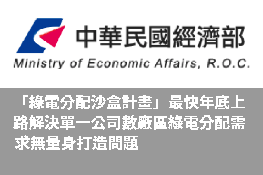 台電公司推出小額綠電記者會中,經濟部就媒體提問說明將推出綠電分配沙盒計畫,標準檢驗局今(15)日進一步說明,本計劃將適用於單一法人(公司)數個廠區中,有不同綠電需求的分配方案,由於已有數家科技大廠反應不同廠區有不同客戶的綠電要求,因此將於年底開始試辦。啟動試辦是為了累積經驗,因應未來綠電交易市場的對外情況,未來也會有更多業者參與,並沒有為單一公司量身打造的問題。