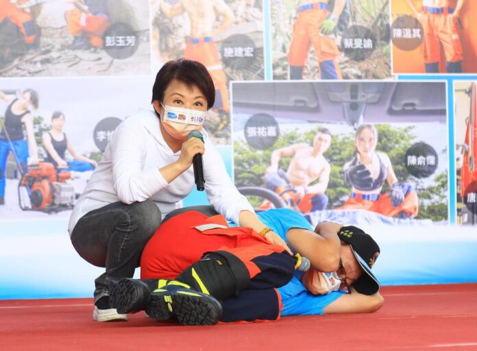 鑑於近日南韓梨泰院踩踏事件,年底節慶活動多,盧市長今日也請消防局長曾進財現場教學遇到擁擠時的保命秘訣。曾局長指出,遇到擁擠時要注意3步驟,第一、留心不跌倒,和身邊的人手臂勾手臂;第二、儘量躲在牆柱後面及牆角;第三、被推倒時,首要需保護頭部、頸椎及胸腔。曾局長並側臥在地上,用手抱頭弓身示範,讓民眾了解自救的方法。