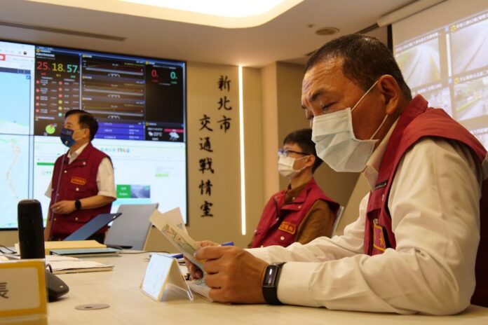 新北市長侯友宜今天一早坐鎮交通戰情室,並與交通大隊、汐止警分局、汐止區公所視訊連線,針對交通部高公局持續進行國1汐止南向10K邊坡搶修工程,指示因應明、後兩天周休假日,對於汐止和瑞芳東北角風景區的交通疏導仍不得鬆懈,全力維持交通順暢。