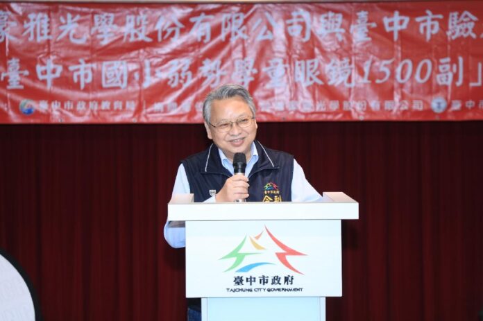 隨著3C電子產品普及,台灣學生視力不良日益嚴重,台灣豪雅光學公司與台中市驗光師公會今(4)日共同捐贈1500副眼鏡給台中市49所國小學校弱勢學生,並提供免費配鏡服務,副市長令狐榮達出席捐贈儀式表示,感謝台灣豪雅及台中市驗光師公會的愛心,教育局將透過學校調查有需要的學生提供協助,不讓視力影響學習。