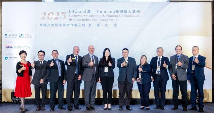 美國蒙大拿州州長詹福特(Governor Greg Gianforte)率領產業訪問團蒞臨台灣,於10月30日與經濟部產業發展署陳佩利副署長、鄒宗勳副組長、蒙大拿商業廳長歐碩文(Scott Osterman)等人共同見證,經濟部台美產業合作推動辦公室(TUSA)與蒙大拿州光電與量子產業聯盟(MPAQ)於智慧製造及光電科技領域簽署產業合作備忘錄,由TUSA林昭憲執行長與MPAQ姚傑森(Jason Yager)總裁進行簽署,雙方將建立台灣與美國蒙大拿州產業合作平台,深化策略夥伴關係,提升產業發展競爭力,共同拓展全球市場。