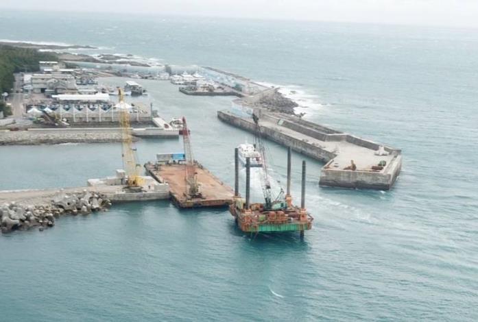 富岡漁港災修工程!施工升降平台暫留航道口 縣府籲來往船隻注意安全