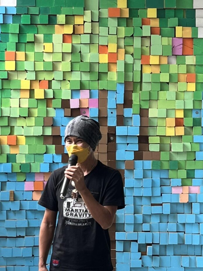 策展人張惠蘭表示,今年以「與自然共好」為策展主軸,東勢區石角國小鄰近大雪山及大甲溪流域,擁有豐富的自然環境與人文風貌,東勢過去也是台灣林業重要據點。活動以石角國小的特色課程主題「化石」發想,辦理「磊石為美」藝術工作坊,從創作過程中,可看見學生豐富的創造力和想像力。此外,藝術家呂沐芢也應邀創作臨時性公共藝術「豐盛之樹」,作品取材自製材廠回收的木料,以積木構成一幅天空與樹木的畫面,除回應過去在地產業的風華歷史,也象徵東勢多彩多姿的生態系統和豐盛的生命力。