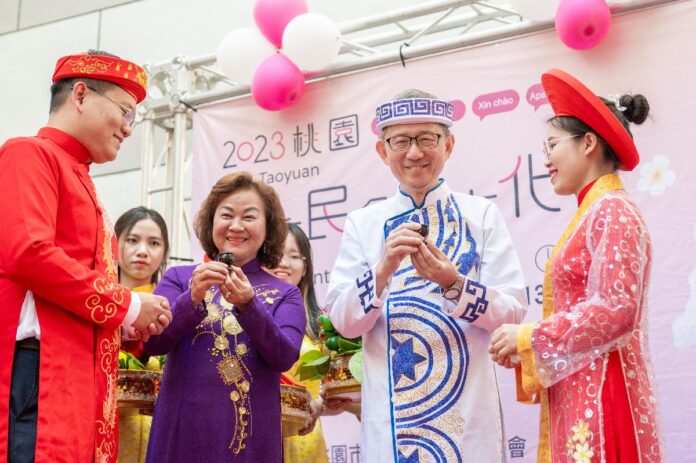 桃園市副市長王明鉅今(9)日下午前往桃園區,出席「新住民專刊發表會暨新住民多元文化市集(越南新住民活動)」。王副市長表示,桃園除有原住民、閩南人、客家人等不同族群外,新住民人口數達6萬6千人,其中以中國大陸(含港澳)的新住民佔最大宗,其他來自泰國、越南、印尼等東南亞國家的新住民朋友則有2萬多人,因此桃園可說是一個族群融合的城市,大家一起在桃園安身立命,為生活打拚,期許未來各個族群間能共存共榮,讓桃園成為有愛、祥和的城市。