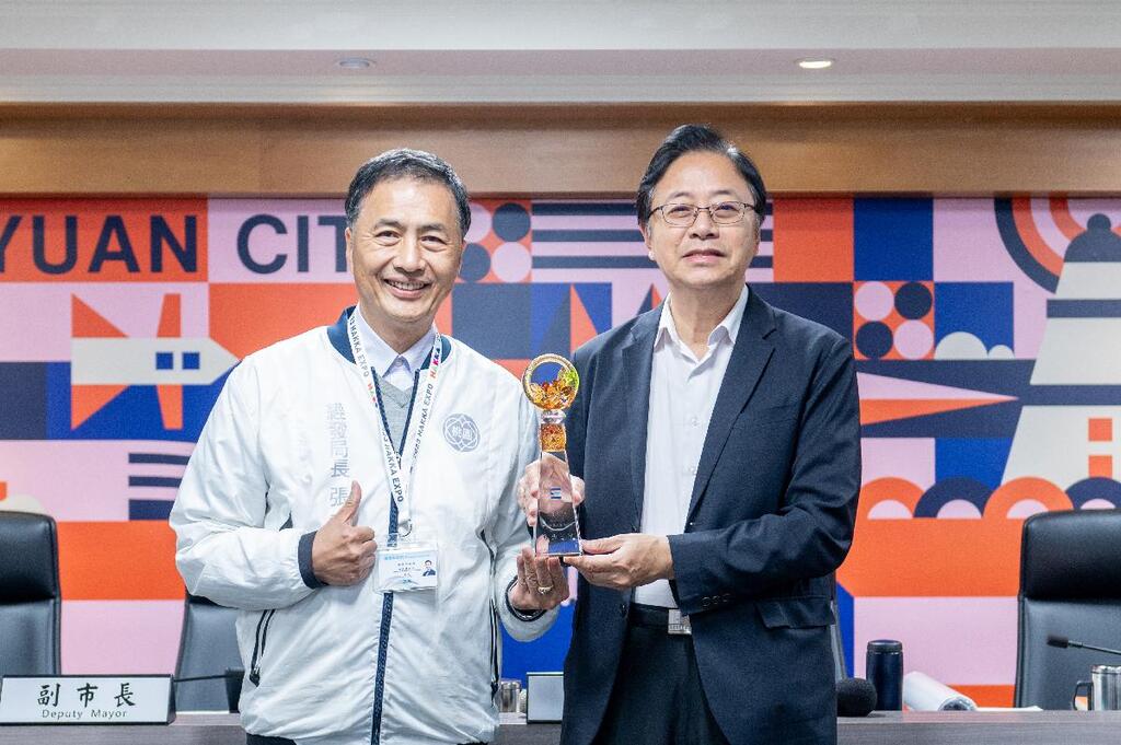 桃園市長張善政今(13)日上午主持市政會議,並接受經發局呈獻「經濟部112年度工廠校正及營運調查考核績優單位團體獎」。張市長表示,桃園共有12,178家工廠,創造4兆元工業產值,產業發展十分蓬勃,然而在智慧科技的潮流下,桃園正面臨傳統產業、中小型產業轉型的挑戰,市府積極推動智慧製造計畫,盼協助企業改善劣勢、強化智慧化能力,進而提升產業競爭力。