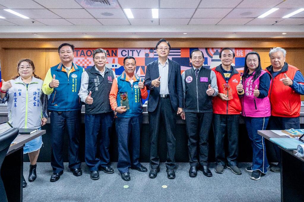 桃園市長張善政今(13)日上午主持市政會議,表揚榮獲衛生福利部「112年度社區金點獎」金點之星團體獎的社區照顧關懷據點。張市長表示,衛生福利部所舉辦社區金點獎素有「社區關懷據點金馬獎」之稱,本市「觀音區廣福社區照顧關懷據點」、「觀音區樹林社區照顧關懷據點」榮獲金點之星團體獎,實屬不易,市府也將調整全市關懷據點餐費,以提供據點長輩更好的共餐品質。