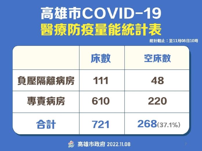 南部新聞高雄市【衛生局】高雄市11/8 COVID-19醫療防疫量能統計