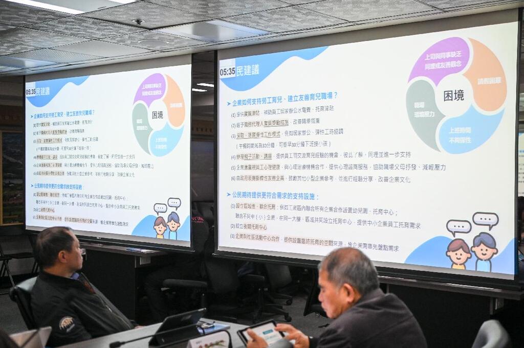 李局長說,勞動局於去(111)年8月舉辦「友善育兒職場公民參與工作坊」,目的是希望透過公民參與,除能相互分享育兒與工作之間的想法與經驗外,也期盼透過腦力激盪,提出更多好的建議,讓事業單位能夠參考應用,打造友善育兒環境。此外,今年更跨局處召集社會局、教育局、勞動局及學者專家組成專業輔導團,入場輔導事業單位設置托兒設施,並邀請友善職場績優企業分享及吸取友善職場經驗。