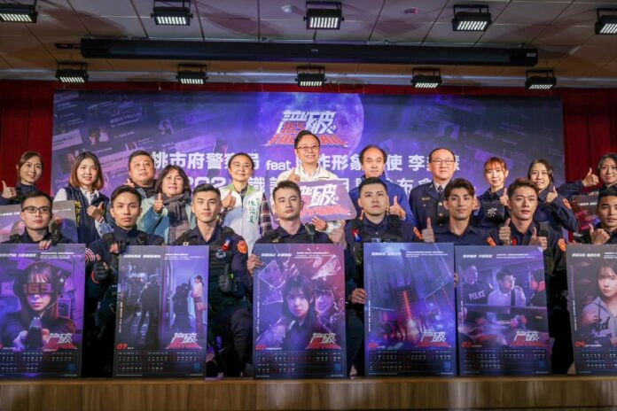 桃園市政府警察局指出,月曆封面由樂天女孩李多慧與15位桃市員警一字排開展現氣勢,並宣示桃園市政府打擊詐騙的決心,內頁更由李多慧以多變的身分(國際特警、啦啦隊女神、網路甜美女孩)展現不同的風格劇照。今年本市元旦升旗典禮,桃市府也將結合升旗網路報名,提供民眾索取月曆,數量有限,歡迎大家一同共襄盛舉。