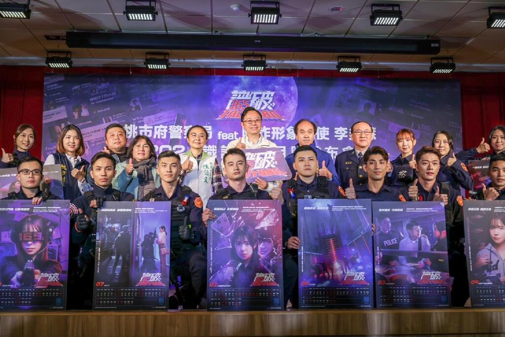 桃園市長張善政今(21)日下午前往大溪區,出席「2024識詐形象月曆發布會」。張市長表示,為加強推廣詐騙防制觀念,市府首次嘗試製作形象月曆,由15名桃警同仁及樂天女孩李多慧一同攜手合作,以「識破」為主視覺,並以未來城市、未來科技感風格拍攝,相信市府精心設計的形象月曆,一定能夠受到大家的喜愛,也期盼透過月曆提醒市民朋友切勿輕易受騙。