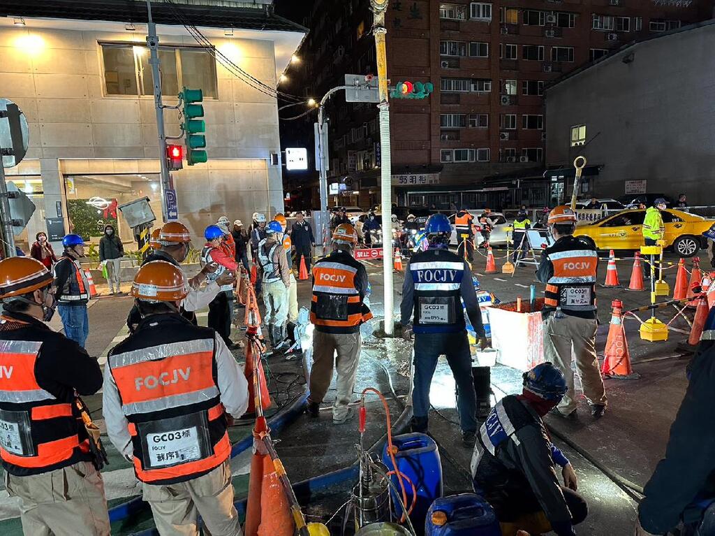 在各單位通力合作下,如時在昨晚11點以混凝土將坑洞填平,配合混凝土強度發展,在27日早上6點開放通車。