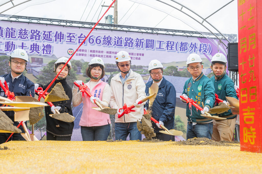 桃園市長張善政今(29)日上午前往平鎮區,出席「平鎮龍慈路延伸至台 66 線道路新闢工程(都外段)開工動土典禮」。張市長表示,「龍慈路延伸至台66線道路新闢工程」第二階段(都外段),規劃從龍慈路自營德路口往西南穿越新街溪及金陵路,最後延伸至省道台66線,全長約1.1公里,總工程經費共計12億元,其中感謝內政部國土署補助2億7,658萬元經費,完工之後,將為市民朋友提供更好的生活環境及更方便的交通網絡。