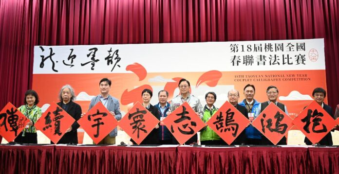 桃園市長張善政今(6)日上午前往大園區,出席「龍迎墨韻:第18屆桃園全國春聯書法比賽開幕典禮」。張市長表示,書法是中國的傳統文化,桃園全國春聯書法比賽更是每年本市最具代表性的書藝競賽,今年比賽共分為9個組別,吸引各年齡層、各職業的民眾共同參與,初賽即吸引來自全國各地854件作品報名,經評審選出251件進入今日決賽,競爭相當激烈。