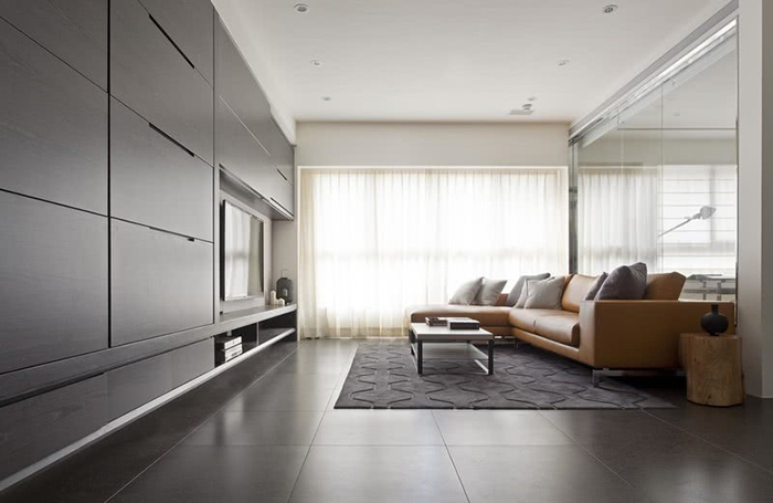 客廳端景一般常見的電視牆多設有櫥櫃,搭配下方的電視櫃