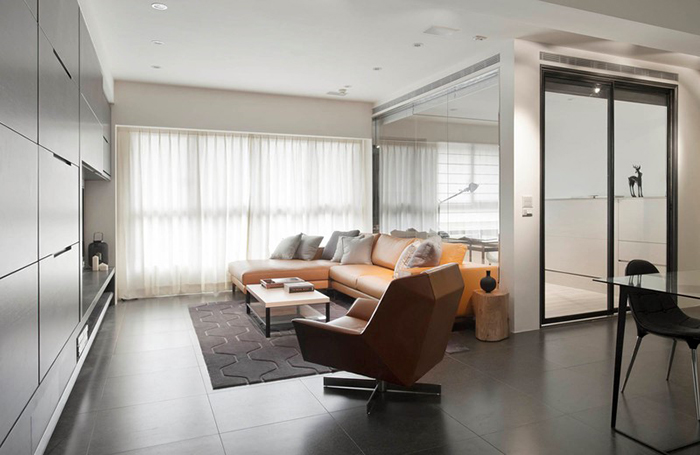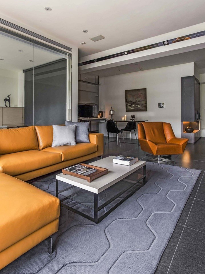 客廳區以質感皮面沙發為主體