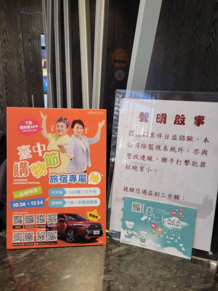 觀旅局補充,此次參加台中購物節「旅宿專屬抽」的合作旅館及民宿業者高達362家,包含337家在地知名高級旅館及25家特色民宿,歡迎民眾來台中度假之餘,再把現金、汽車帶回家。合作店家以「台中購物節活動官網旅宿專屬抽旅宿業者名單」為準,相關資訊請至「大玩台中」官網( https://travel.taichung.gov.tw/zh-tw/event/activitydetail/7804 )查詢。(11/11*6)* 觀旅局