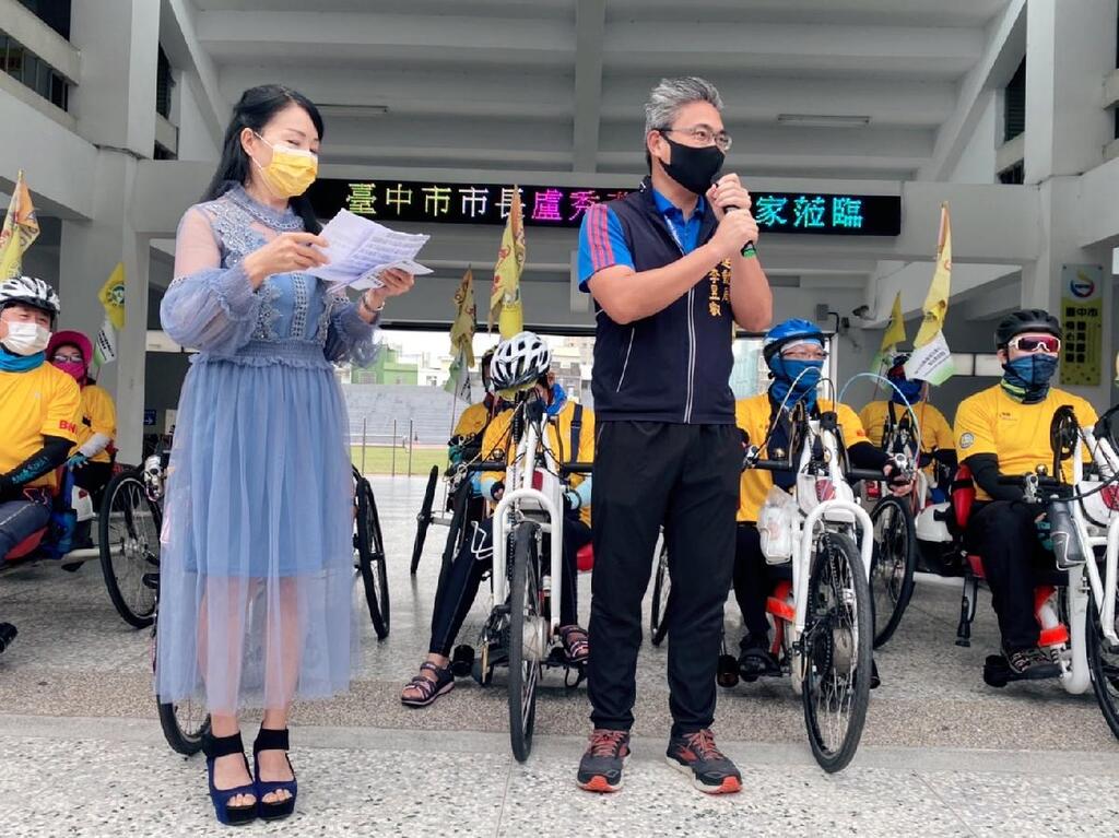 「2022年台中身心障礙自行車環台」全體20位車友今(12)日在豐原體育場出發,運動局長李昱叡代表市長盧秀燕出席開幕式表示,身心障礙自行車運動展現堅強的毅力,每一位車友都將克服挑戰完成環台路程,令人感動,李局長也向每一位車友握手打氣,提醒全程安全第一,平安返回。