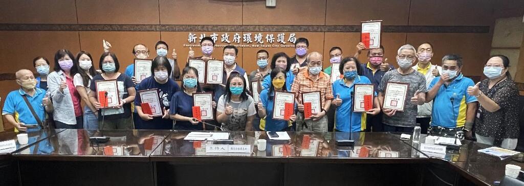新北市環保局昨(11)日舉辦「111年度水環境巡守隊績效考核表揚典禮」,表揚榮獲5星級認證的新店崇光社大、鹿角溪濕地、鸚哥等3支水環境巡守隊,及榮獲4星級、3星級認證的7支水環境巡守隊,同時也針對表現優異的志工頒發環保特殊事蹟獎、最佳環境保護獎、最佳志工服務時數及環境教育推手獎等共22名個人獎項。環保局主任秘書陳美玲親自表揚,感謝志工夥伴的無私奉獻及各隊巡守夥伴的辛勤付出,公私協力共同守護水域環境。