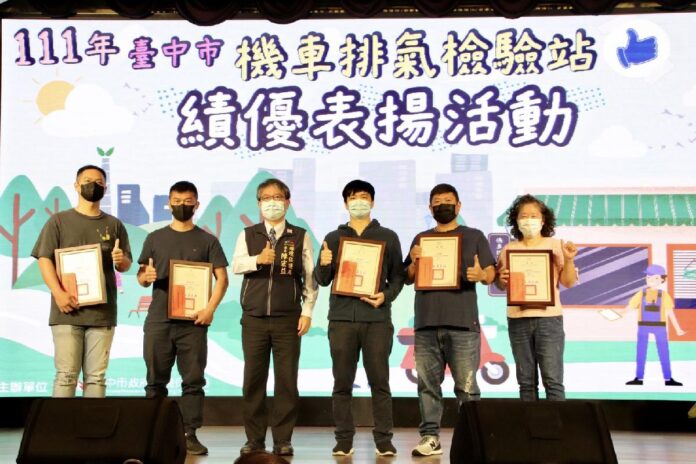 環保局指出,台中市目前共有450家領有認可證的檢驗站,環保局特別針對各檢驗站的檢測環境、檢測儀器保養狀況、文件品管及服務態度等服務品質評比,今年評選出「崑松機車行」等20家檢驗站為「年度績優檢驗站」;為促進各檢驗站良性競爭,鼓勵檢驗站協助宣導民眾落實機車排氣定檢,特別頒發「機車檢驗數績優獎」,評選出「宥佳輪業行」等10家檢驗站;另推動老舊機車汰換補助政策,針對鼓勵民眾汰換老舊機車績效優異者頒發「汰舊卓越獎」,評選出「順發車行」等10家檢驗站,共40家檢驗站獲獎,提升台中市機車定檢率、老舊機車汰除率及降低高污染車輛排放廢氣對城市環境及市民健康的危害。