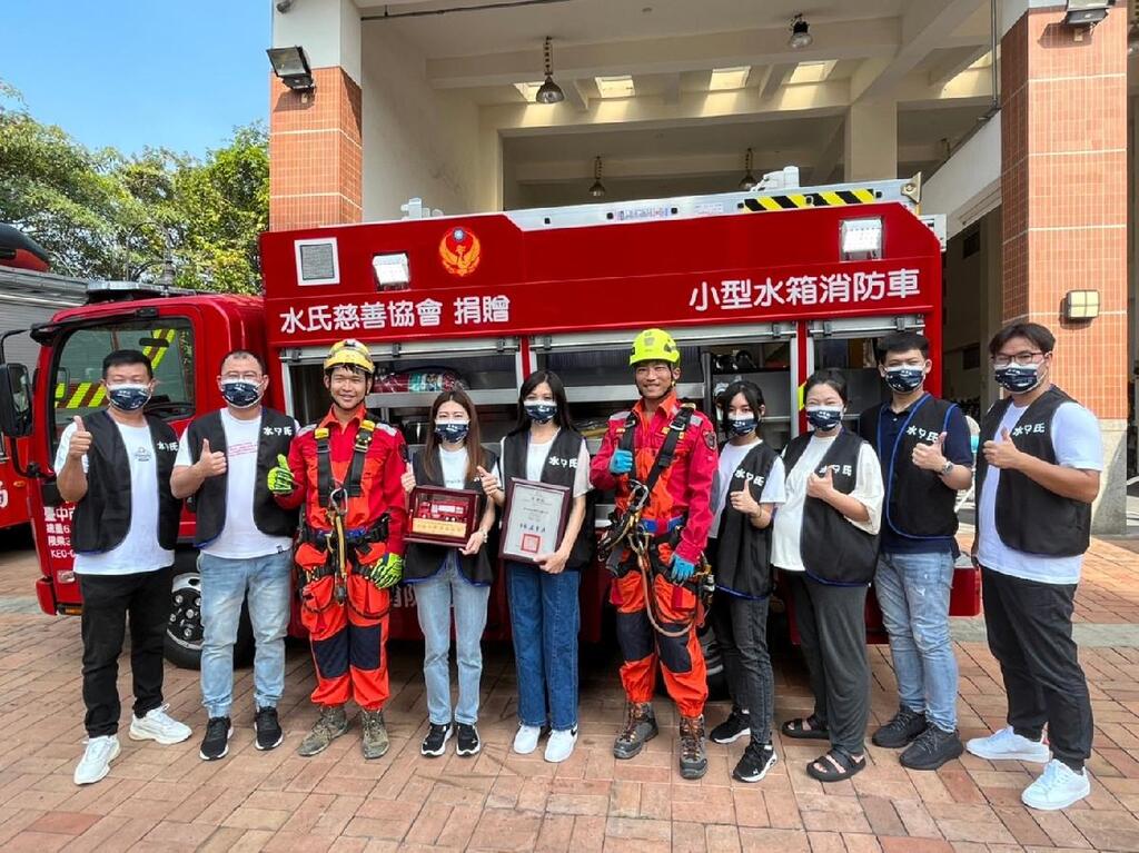 水氏慈善協會捐贈小型水箱消防車及救災器材 中市消防局感謝善行義舉