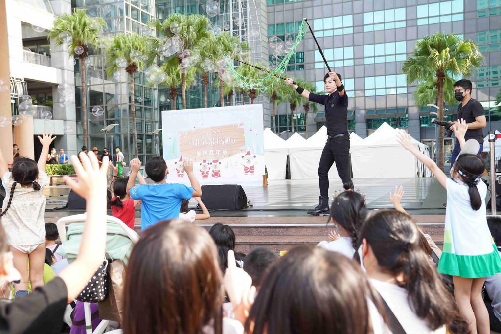 知名兒童劇團「奇幻森林劇團」,也帶來魔術與特技結合的兒童劇「方方圓圓遊新北」,將新北在地美食融入表演中,演員並使用魔術、立方體,以及圓環搭配,精湛的特技演出讓在場觀眾瞠目結舌,鼓掌聲不斷!「歡樂小丑魔術秀」表演中,扮裝成小丑的表演者,以生動活潑的肢體,帶來繽紛有趣的表演動作,讓現場氣氛除了溫馨的耶誕氣氛,更增添逗趣元素。