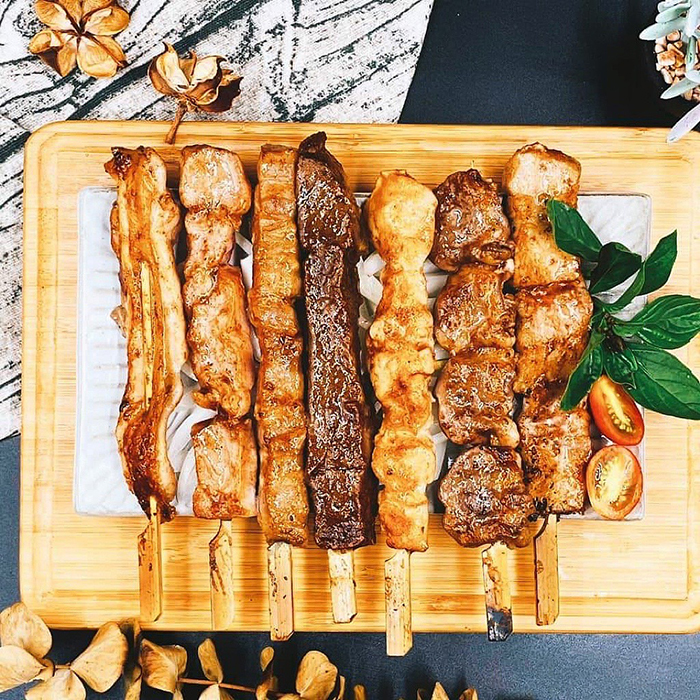 『紅囍串燒』以獨特調味醃製肉品,將肉質的鮮美緊緊鎖住,每一根肉串,在燒烤的過程中,都會被塗上獨一無二的《紅囍獨特燒烤醬》,最後再撒上獨家秘製烤肉粉,為每一口串燒注入絕妙的風味,一吃就愛上、不吃會想念!