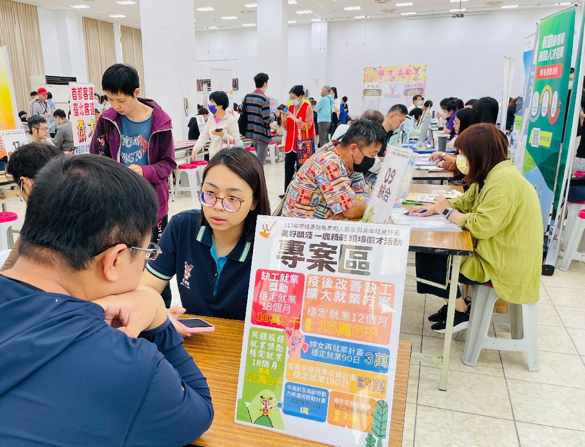 桃園市政府就業職訓服務處整合在地產業,透過連結勞動力發展署桃竹苗分署、桃園市榮民服務處及中華民國工業協進會,於5/10(五)10:00-14:00五中市民活動中心【桃園區中平路118號】共同舉辦美好職涯 一鹿精彩暨113年連結重點產業用人需求與青年就業計畫徵才活動,活動邀請精準醫療、智慧機械、循環農業等相關重點產業共襄盛舉,當日參加人數276人,媒合率83%。