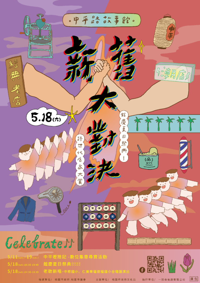 桃園市政府文化局誠摯邀請各位市民朋友,一同參與中平路故事館館慶我們的夏日祭典活動!更多活動資訊請上中平路故事館臉書粉絲專頁:(https://www.facebook.com/ZhongpingRoadStoryHouse/?locale=zh_TW)