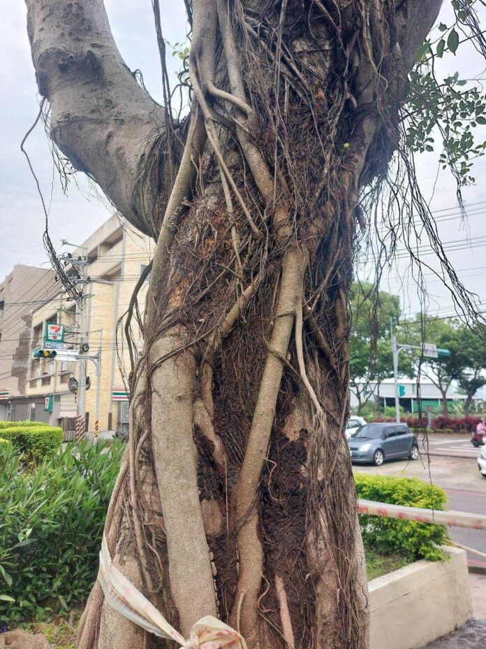 而公告期間有接獲民眾反映希望能保留有染病榕樹,故本公所召集農業部林業試驗所專家學者、桃園市政府農業局、當地里長及廠商會勘,針對褐根病株染病狀況及後續處理方式進行討論,因該喬木褐根病病況嚴重,其根脈相連於水泥花台基座,且樹枝幹逐漸乾枯隨時有傾倒危險疑慮,考量公共安全風險,本公所於(112)年11月先進行減重修剪,於(112)年12月進行打點滴抑制褐根病菌蔓延,期待能減緩喬木傾倒危及安全發生,減緩措施完成後亦然由專業植栽園藝維護廠商持續觀察處理。