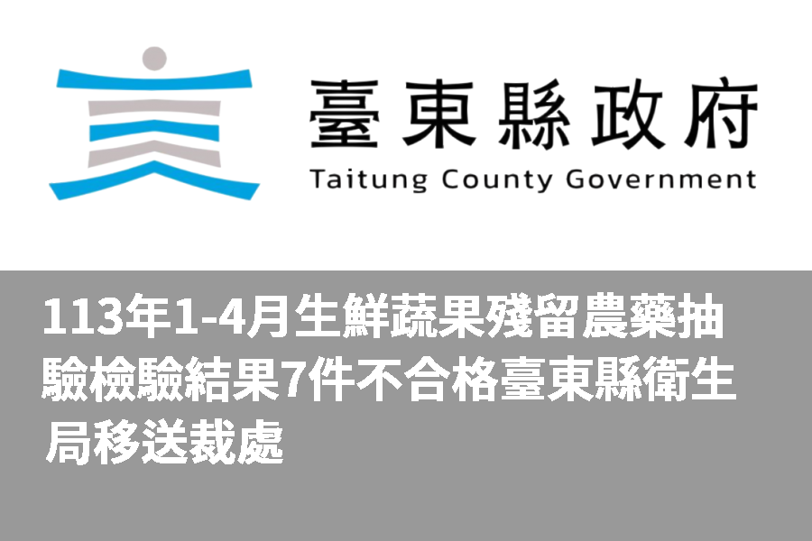 東部新聞台東縣113年1-4月生鮮蔬果殘留農藥抽驗 檢驗結果7件不合格 臺東縣衛生局移送裁處