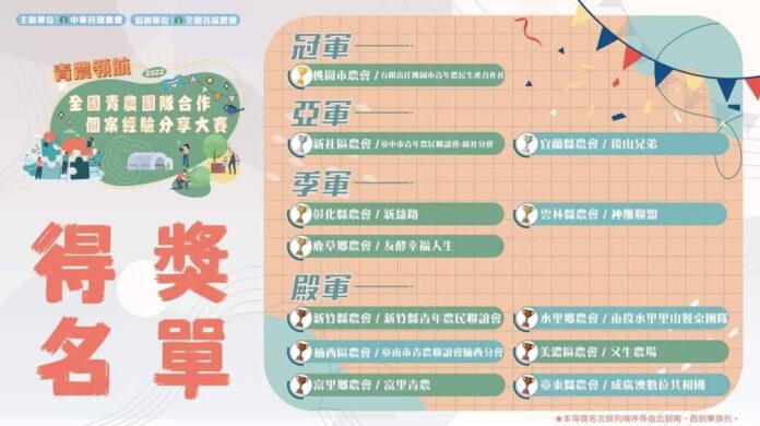 鼓勵青農夥伴組隊,互助分工提升農業經營效率,中華民國農會日前舉辦「青農領航-全國青農團隊合作個案經驗分享大賽」,12組來自全國各縣市農會推派的農業菁英團隊參與,台中市農會及新社區農會所輔導的青農團隊,以「青農串聯合作無極限」為主題,分享團隊透過專業分工、跨業連結及資源共享等合作理念,讓產業永續共好,勇奪全國亞軍,成績表現優異。