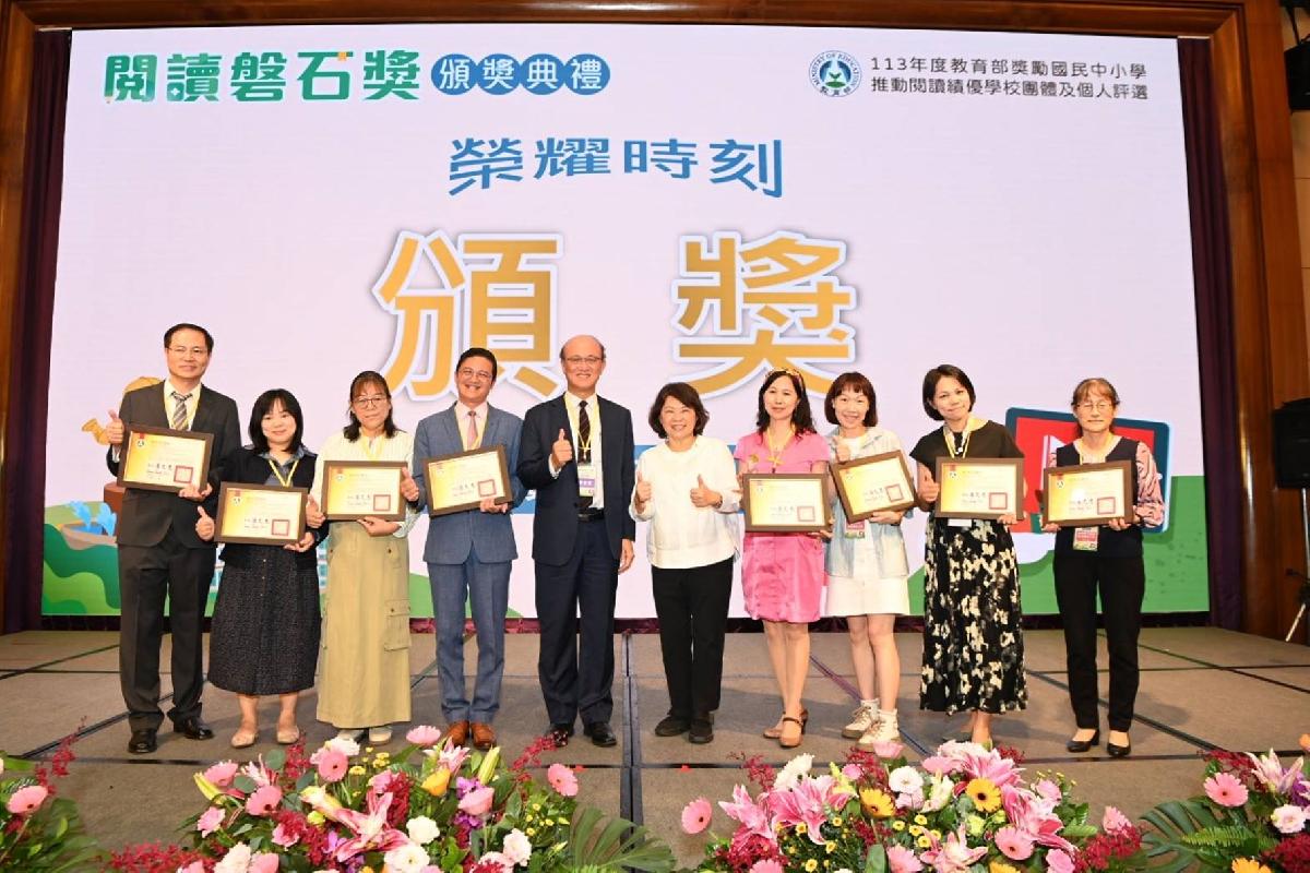 嘉義市政府大力推廣閱讀教育,連續第五年榮獲教育部閱讀磐石獎肯定,並連續兩年主辦教育部獎勵國民中小學推動閱讀績優學校團體及個人評選頒獎典禮。今(15)日下午,嘉義市長黃敏惠與教育部林騰蛟次長一同出席典禮,頒獎表揚來自全國各縣市榮獲磐石學校國中組計13校、磐石學校國小組計27校、閱讀推手個人組計41位、閱讀推手團體組計18隊。 市長黃敏惠首先恭喜每位獲獎的團體、個人,並感謝所有學校匯聚親師的用心,推動閱讀不遺餘力,透過閱讀讓孩子們的世界更加寬廣而精采。嘉義市日前舉行112學年度國民中小學閱讀表揚,看到孩子們透過說書人、豐富的閱讀心得分享他們透過閱讀所理解的世界,也看到校園推動閱讀的豐碩成果,令人印象深刻而感動。今日興安國小結合說書人與擊興打擊樂團演出,將音樂與永續、環保意識結合,更生動展現「音符是一把開啟回憶的鑰題,閱讀是一條擴展視野的途徑,藉由音符的流動,走進閱讀的幸福時光」,也讓人看見接近閱讀的另一種方法。 黃敏惠市長也分享,嘉義市以「人文第一、科技相佐、精緻創新、國際視野」為教育四大願景,閱讀不僅能豐富我們的知識,更能培養我們的思考力和創造力,這是一種對人類智慧的永續投資。市府長期以來將推動閱讀教育視為市政的重要任務,努力積極引進各方資源,每年編列預算讓學校充實圖書及完善閱讀環境,設置社區共讀站、靜思書軒以提升學子閱讀素養,培養學生帶得走的能力。期待透過閱讀,實現「新永續」目標,培育出具未來影響力的世界公民。 黃敏惠市長強調,市府施政十大旗艦計畫,以「永續」概念擘劃城市發展藍圖,而「永續」,不僅涵蓋環境發展,更包括文化、教育等方面,因此規劃「身心健康」「自我實現」、「永續教育」為本市教育三大主軸,藉此培育出具未來影響力的世界公民。閱讀即永續,閱讀不僅是知識的源泉,更是城市智慧的結晶,市府將持續推動閱讀,讓閱讀成為嘉義市最美麗的風景線。 教育處郭添財處長表示,嘉義市長期深耕閱讀教育,市府逐年增列圖書預算補助學校充實及汰換圖書設備,目前全市國中小總圖書量已增至87萬餘冊,112學年度平均每生圖書數約42.9冊。今年教育部也補助各縣市政府充實中文圖書經費,嘉義市亦獲得229萬元補助,豐富學校藏書,也希望能增進學生們的閱讀體驗,激發他們對閱讀的興趣和熱愛。今年度嘉義市有林森國小榮獲閱讀磐石獎,民族國小陳順興老師榮獲閱讀推手獎,這已經是連續第五年嘉義市推薦的學校獲得閱讀界的奧斯卡獎,這些都是各校積極落實閱讀教育所獲得的榮耀。 磐石學校林森國小推動閱讀看重的是科學證據,今年以「森生深閱讀閱動新高度」閱讀推動方案,獲得評審肯定。吳育楷校長說,林森深耕閱讀多年,身處數位時代,閱讀仍是自學最有效的路徑,培養學生具備評估、整合、組織、呈現的思辨力,期盼孩子都能在數位世代,因閱讀擴展視野、培養獨立思考能力。 以「讓閱讀成為生活常態」方案獲得「磐石推手」的民族國小陳順興老師,致力於身教式晨讀、聊書及數位閱讀推廣。陳老師以閱讀開展學生的學習力及想像力,點亮孩子學習的熱情,從自身生活環境出發,透過閱讀教育,進行專題探究並採取實際行動,從覺察問題到以實際行動解決問題,改善生活所遭遇的問題,成為具備閱讀素養的人。 今年再度由嘉義市政府承辦教育部獎勵國民中小學推動閱讀績優學校團體及個人評選活動。典禮由已連續三年獲得全國學生音樂比賽南區特優佳績的興安國小「擊興打擊樂團」擔綱開幕表演,指導老師黃敬渝、陳淑華、黃秀慧老師發揮巧思設計橋段,將樂曲與閱讀元素以及永續家園主題融合,精彩的表演讓與會來賓讚嘆不已!而中場表演由連續三年獲得全國舞蹈比賽團體組南區決賽特優第一名佳績的崇文國小舞蹈班演出「歡鼓童心舞之詠讚」舞碼,在咚咚鼓聲中桂冠精靈來報喜,將傳統與現代融合,時而活潑、時而優雅,提升多元文化的元素創作,實踐創新永續的舞蹈藝術教育,讓現場參與人員沉浸在這場舞之詠讚、美之饗宴。