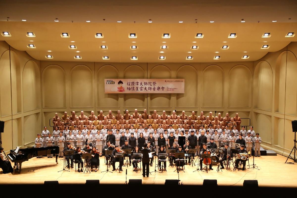佛光山圓福寺為感念開山祖師星雲大師對人類的貢獻,今(4)日晚上在嘉義市文化中心音樂廳舉辦「禮讚偉大佛陀暨緬懷星雲大師音樂會」,藉由美妙的音聲供養、禮讚佛陀,黃敏惠市長也一同與佛光山副住持慧開法師、佛光山圓福寺覺禹法師與南華大學校長林聰明一起出席音樂會並緬懷星雲大師慈悲貢獻、一生不斷透過弘揚佛法。 黃敏惠市長表示,每年農曆四月初八是佛誕節,去年佛光山開山祖師星雲大師於元宵節示寂,享耆壽97歲。感謝佛光山圓福寺對這次音樂會的用心籌備與付出,此次音樂會除了感念佛陀降誕人間,也為了緬懷星雲大師對人類、對社會的貢獻,這也是在疫情後的所舉辦禮讚佛陀的音樂會,更顯意義不凡,透過教育力量弘揚佛法、藉由文化力量洗滌人心,讓我們有了一個遠離煩惱能夠依循的方向和道路,社會更和諧穩定。 佛光山圓福寺覺禹法師表示,每年佛光山圓福寺會舉辦音樂會由佛光山叢林學院梵唄讚頌團、南華大學民族音樂學系聯合演出,感謝黃敏惠市長的支持,提供文化局音樂廳優質的的場地,一起慶祝佛誕節以及緬懷星雲大師,星雲大師一生希望以佛曲的傳唱來淨化人心,也藉由傳唱讓佛法流入大家的心理,也謝謝大家的參與,每年音樂會皆獲得廣大迴響,希望透過音樂會帶給嘉義市更多祥和與歡喜。 南華大學校長林聰明表示,非常感謝黃敏惠市長與市政府、圓福寺、佛光山叢林學院大力的協助,讓南華大學學生能有機會參與演出,對學生的未來都是留下印象深刻以及非凡意義。 民政處表示,嘉義圓福寺每年定期舉辦佛誕音樂會,藉此表達對釋迦牟尼佛的感謝,除了以美妙的樂音供養、禮讚佛陀之外,也藉由音樂感動人心。這次音樂會由南華大學民族音樂學系學生多種樂器演奏、合唱團唱誦和諧、舞團翩翩起舞,更有師長以聲樂演唱,音聲震攝全場。佛光山叢林學院梵唄讚頌團由在家、出家僧信二眾組成,出家眾梵音和合,在家眾飛天獻舞,採「傳統與現代融合」路線聯合演出,給予現場觀眾不同一般的視覺饗宴。