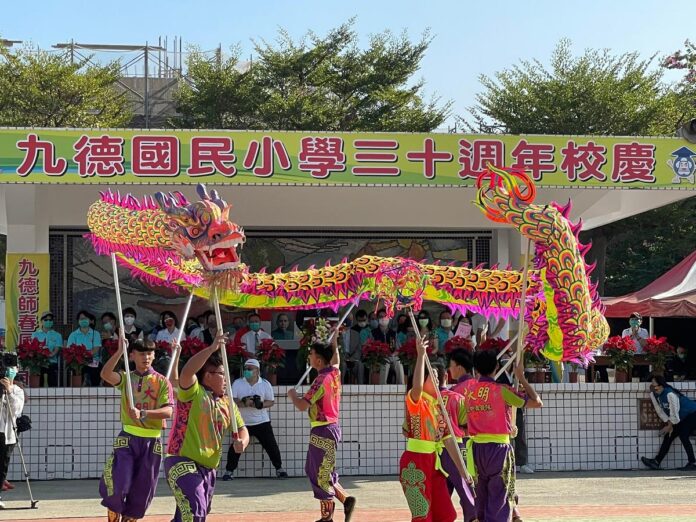 今日九德國小為慶祝創校30歲生日,除安排校內國樂團、大自然快樂操種子隊演出,並邀請大明高中舞龍隊、僑泰中學儀隊進行表演,熱鬧歡慶學校生日。尤科長指出,市長盧秀燕上任後,教育預算增加到六都第一,天下雜誌公布評比,台中市榮登「教育王」。