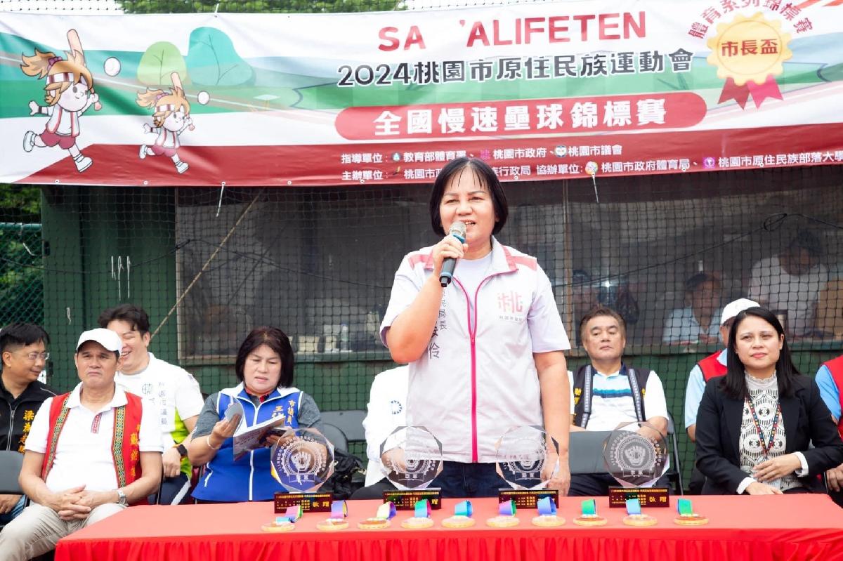 陳姿伶Amy•Muwakay局長表示透過競賽,不僅享受揮棒及球場馳騁的樂趣,也使忙碌生活中得以舒展身心,更能以球會友,將全國各地愛好慢速壘球的族人齊聚桃園,不僅能強健體魄,更能藉由切磋球技增進友誼,為未來推動在地原住民體育人才職涯發展有助益。