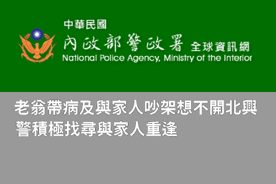 老翁帶病及與家人吵架想不開 北興警積極找尋與家人重逢