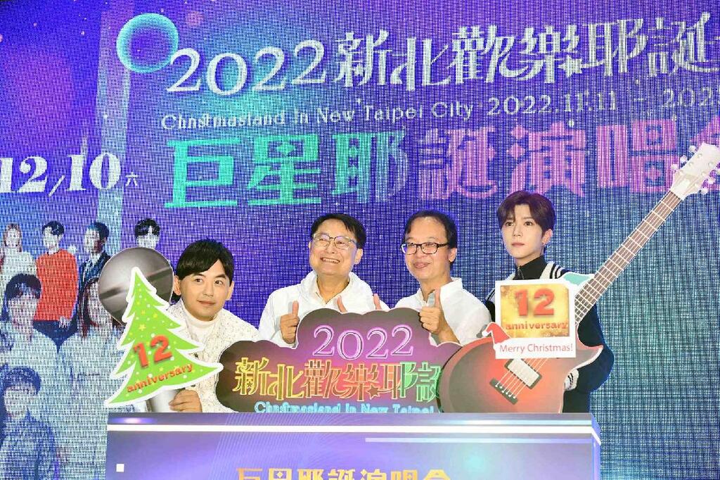 2022新北歡樂耶誕城-巨星耶誕演唱會將在12月10日及11日舉行,市府今(23)日於1樓大廳舉辦卡司公布記者會,揭曉今年表演群星,由黃子佼接下第8年主持棒,表演歌手有韋禮安、動力火車、瘦子E.SO及蔡健雅等重量級巨星,陣容華麗。副市長陳純敬表示,新北耶誕城每週舉辦不同特色活動,12月更迎來眾星雲集的演唱會,歡迎大家前來同樂。