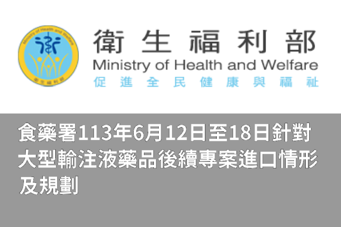 食藥署將持續調度藥品供應,並呼籲醫療機構,各類大型輸注液藥品切勿大量或重複訂購、避免浪費及使用於非臨床必要的用途。