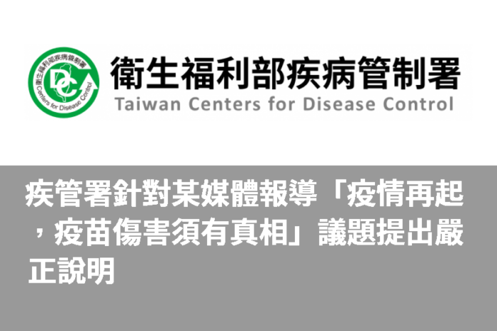 疾管署針對某媒體報導「疫情再起,疫苗傷害須有真相」議題提出嚴正說明