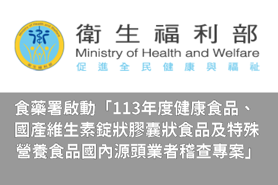 國人為補充營養,有額外攝取健康食品、維生素類產品的習慣,而配方奶粉與疾病專用配方等特殊營養食品也是嬰兒及特定疾病患者於必要時需使用之營養補給品,食品藥物管理署(下稱食藥署)針對此類產品訂有特定管理法規,要求業者應依法取得產品查驗登記許可後,始得製造、輸入或販售。為確保此類產品符合我國法規規範,食藥署近日將啟動「113年度健康食品、國產維生素錠狀膠囊狀食品及特殊營養食品國內源頭業者稽查專案」,會同地方政府衛生局執行稽查。