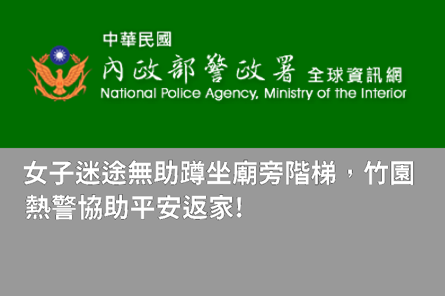女子迷途無助蹲坐廟旁階梯,竹園熱警協助平安返家!