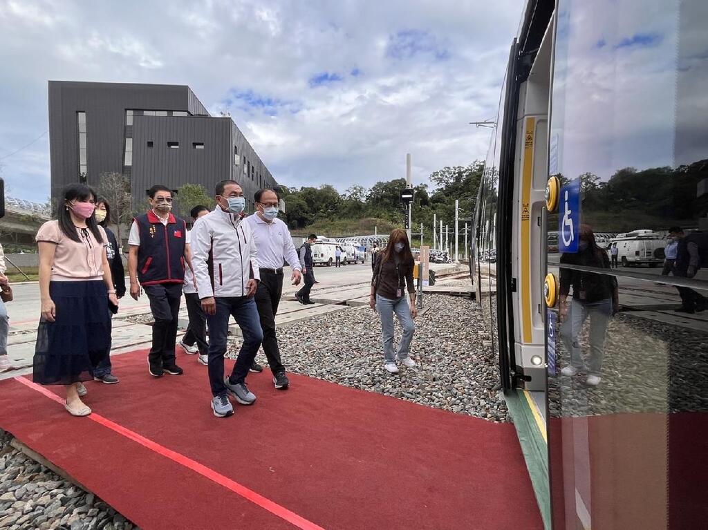 三環六線中的安坑輕軌目前整體進度已達99%,市長侯友宜今(27)日特別前往安坑輕軌機廠行控中心,並搭乘列車至十四張站(K9),確認安坑輕軌進度及全線列車行駛狀況,列車行駛過程一路平穩舒適且安全快速,預計12月11日將進行初勘作業,初勘完成後將報請交通部辦理履勘。