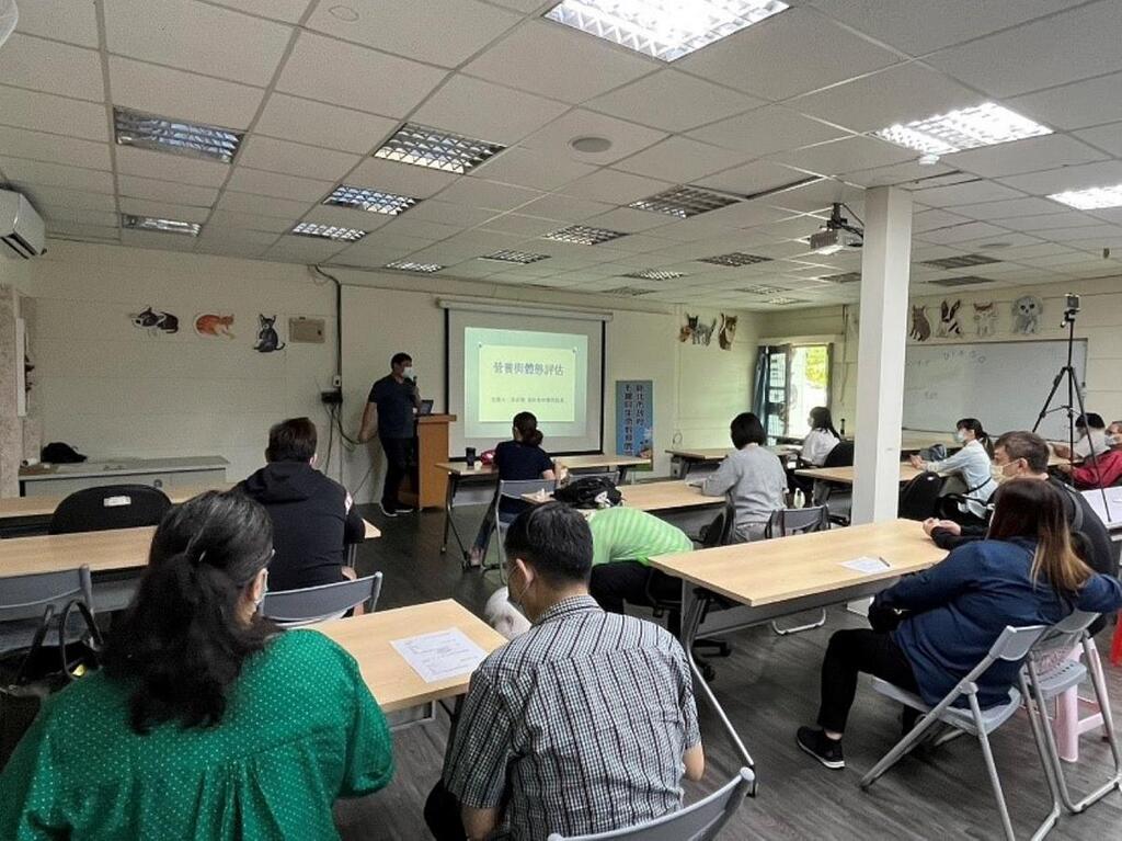 新北市政府動保處日前特地邀請吳沛聰獸醫師至毛寶貝生命教育園區開課講解寵物營養攝取及體態相關課程,吳沛聰獸醫師表示,飼主可藉由體態評估指南(BCS)來觀察毛寶貝身材狀況,5分最肥胖,1分是過度消瘦,正常而言健康適中的身材為2-3分,由上往下俯視毛寶貝背部身材可見明顯腰身,但不會見到明顯肋骨輪廓。建議飼主紀錄餵飼毛寶貝鮮食的情況,透過檢視日常紀錄即可知毛寶貝攝取何種食物後有較佳的反應,身體健康及外在毛色表現。